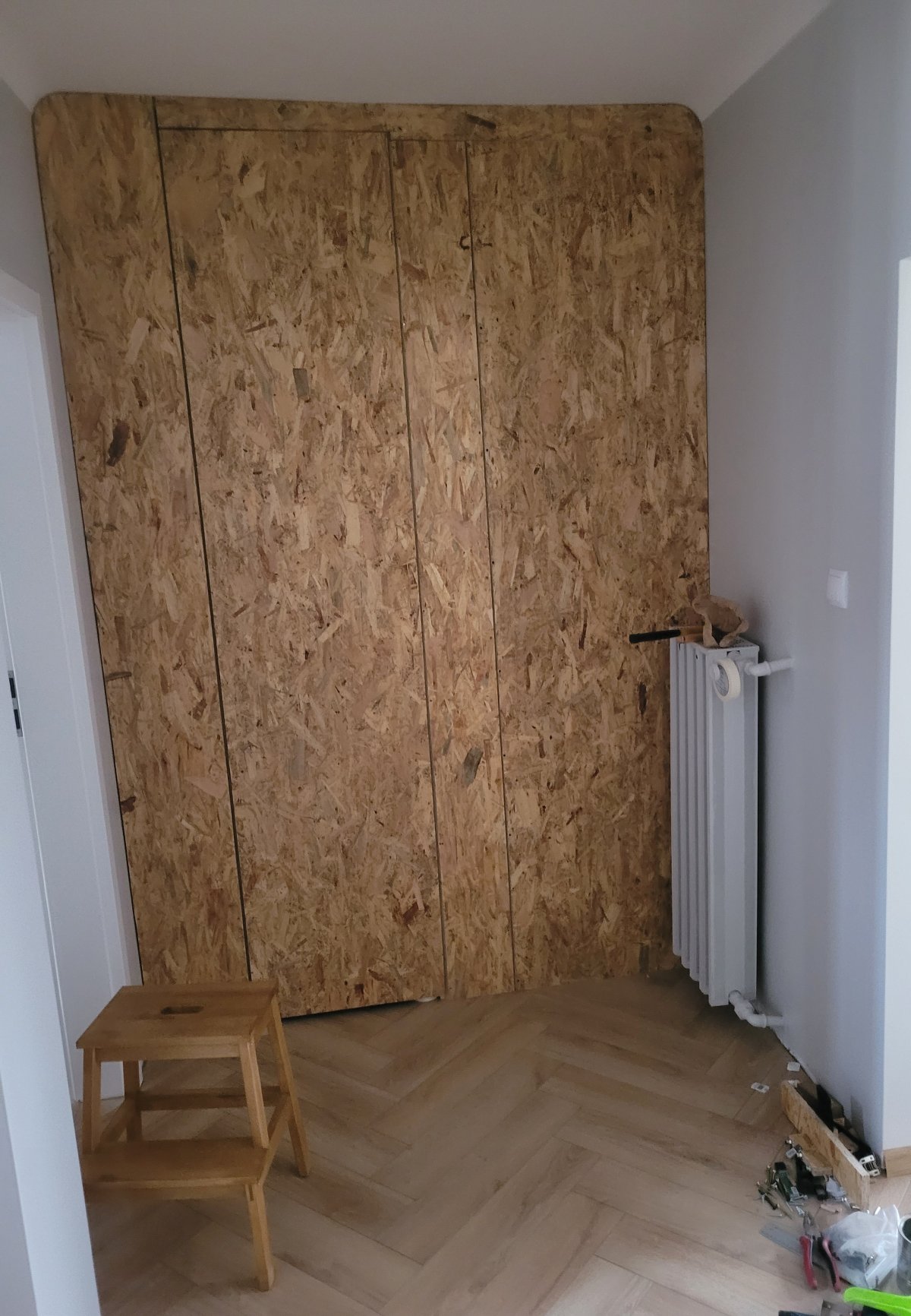 Ścianka działowa z ukrytymi drzwiami do garderoby