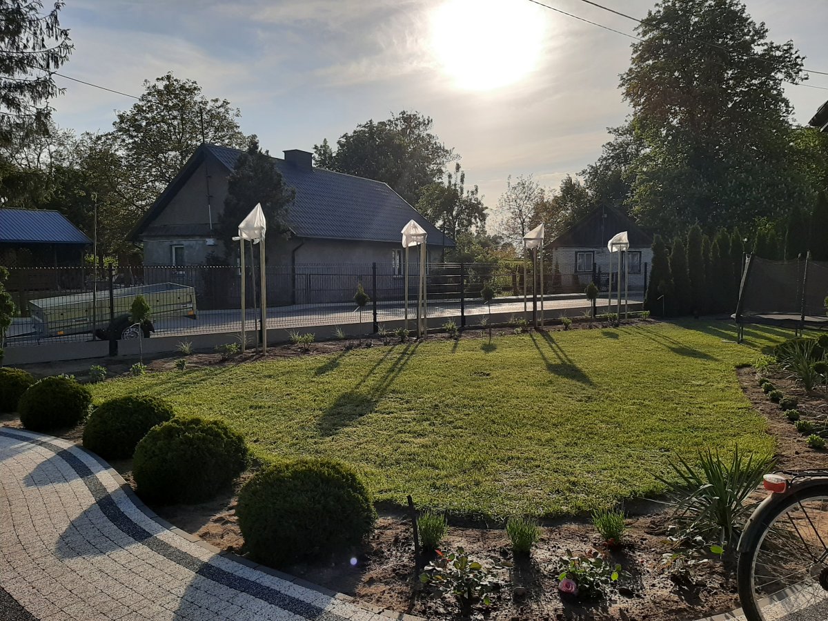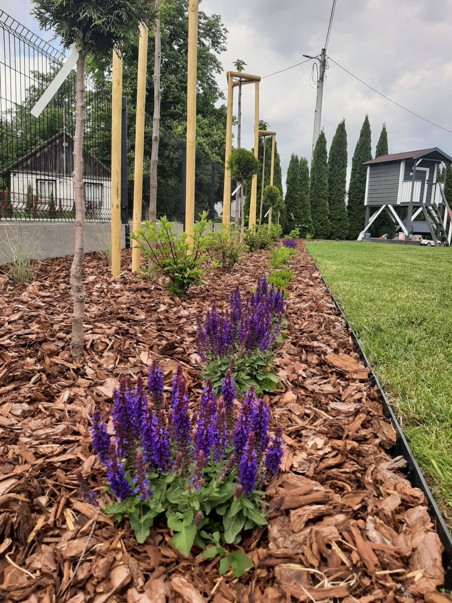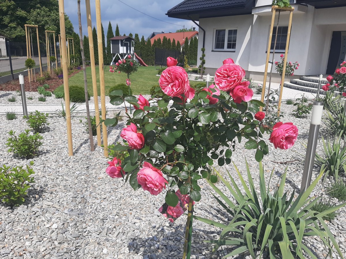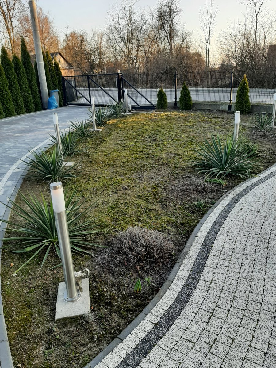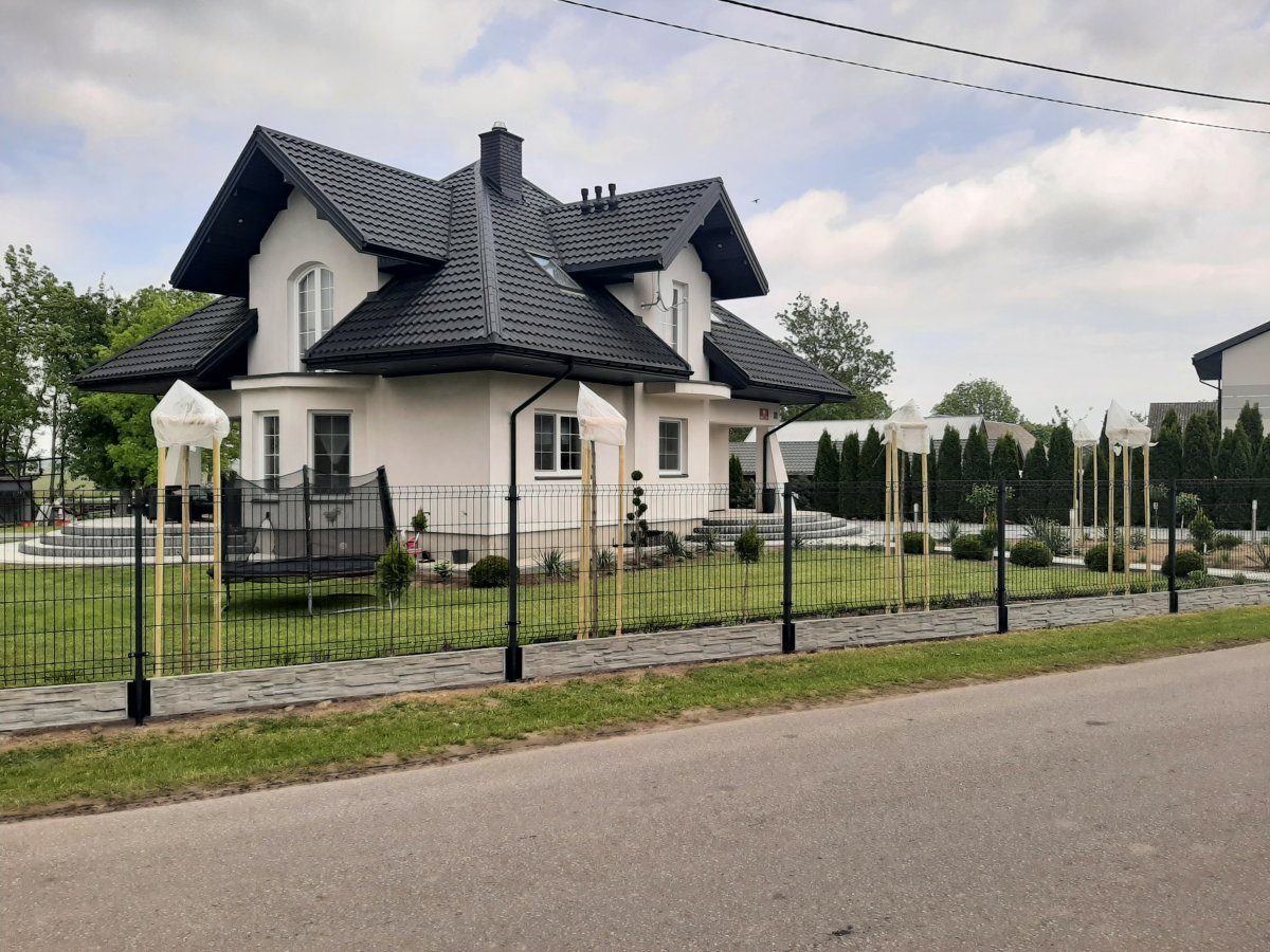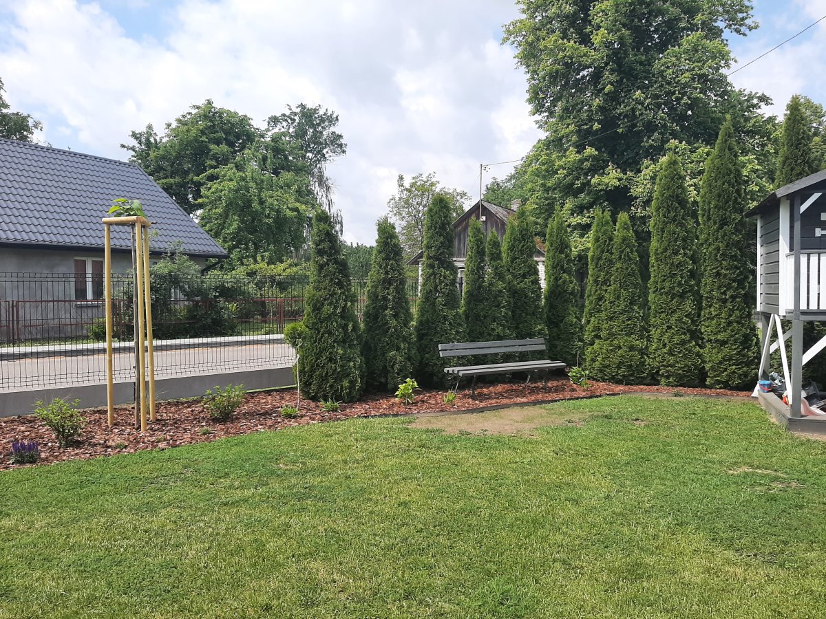 Reprezentacyjna część frontowa, pełna kwitnących roślin. Wśród życzeń Inwestora znalazły się katalpy, hortensje, róże, trawy ozdobne, a także formowane na wzór "bonsai" iglaki. Termin realizacji maj.