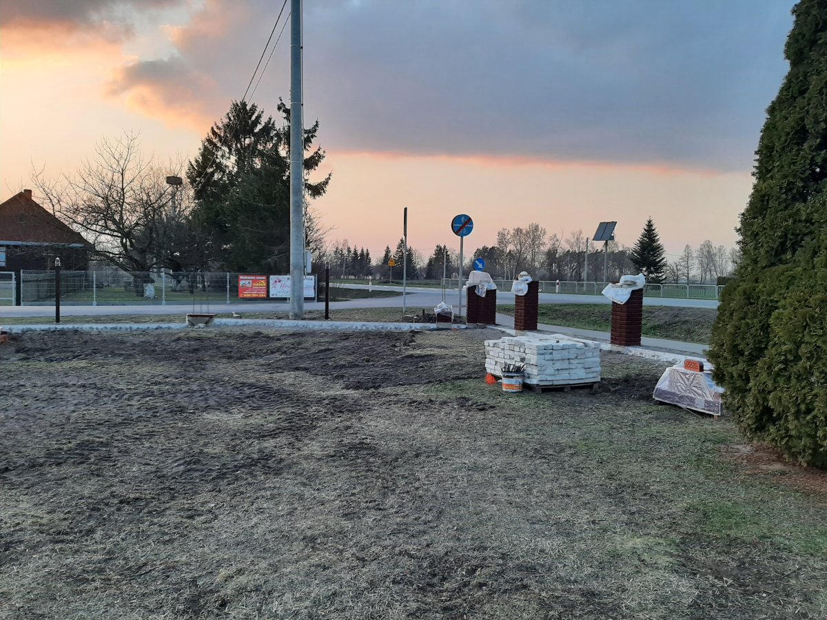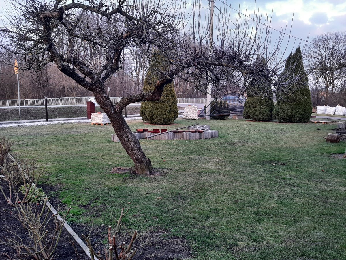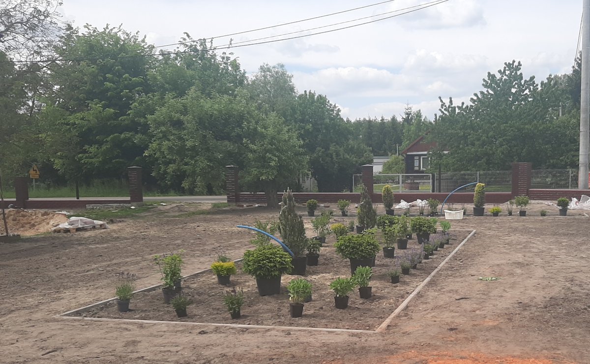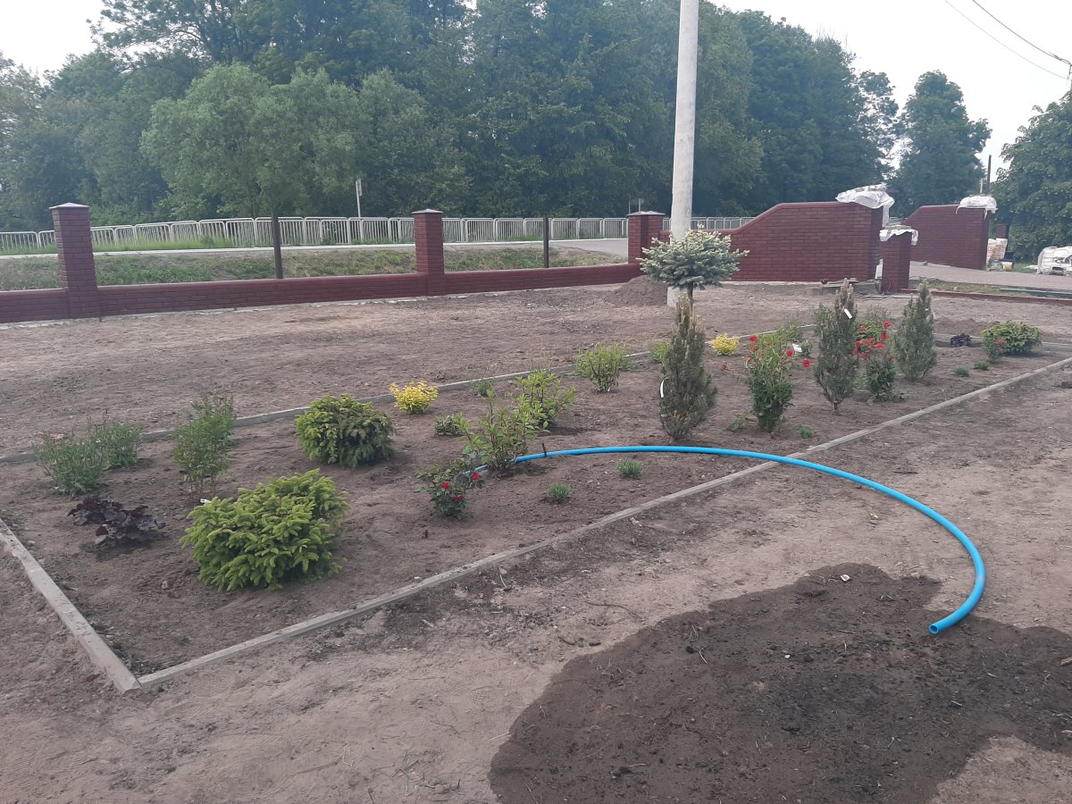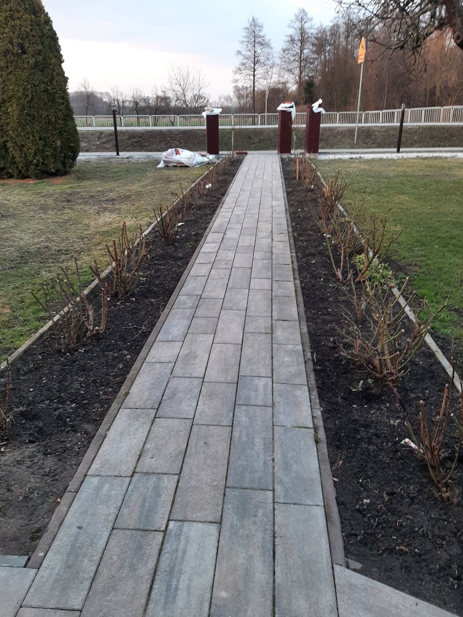 Z aleją różaną. W trakcie gdy my tworzyliśmy projekt Inwestorzy usunęli z działki stare tuje i zerwali darń celem założenia nowego trawnika. Pozostały tylko krzewy róż posadzone po obu stronach chodnika prowadzącego do domu. To właśnie one stały się punktem odniesienia dla reszty założeń. Realizacja maj-czerwiec.